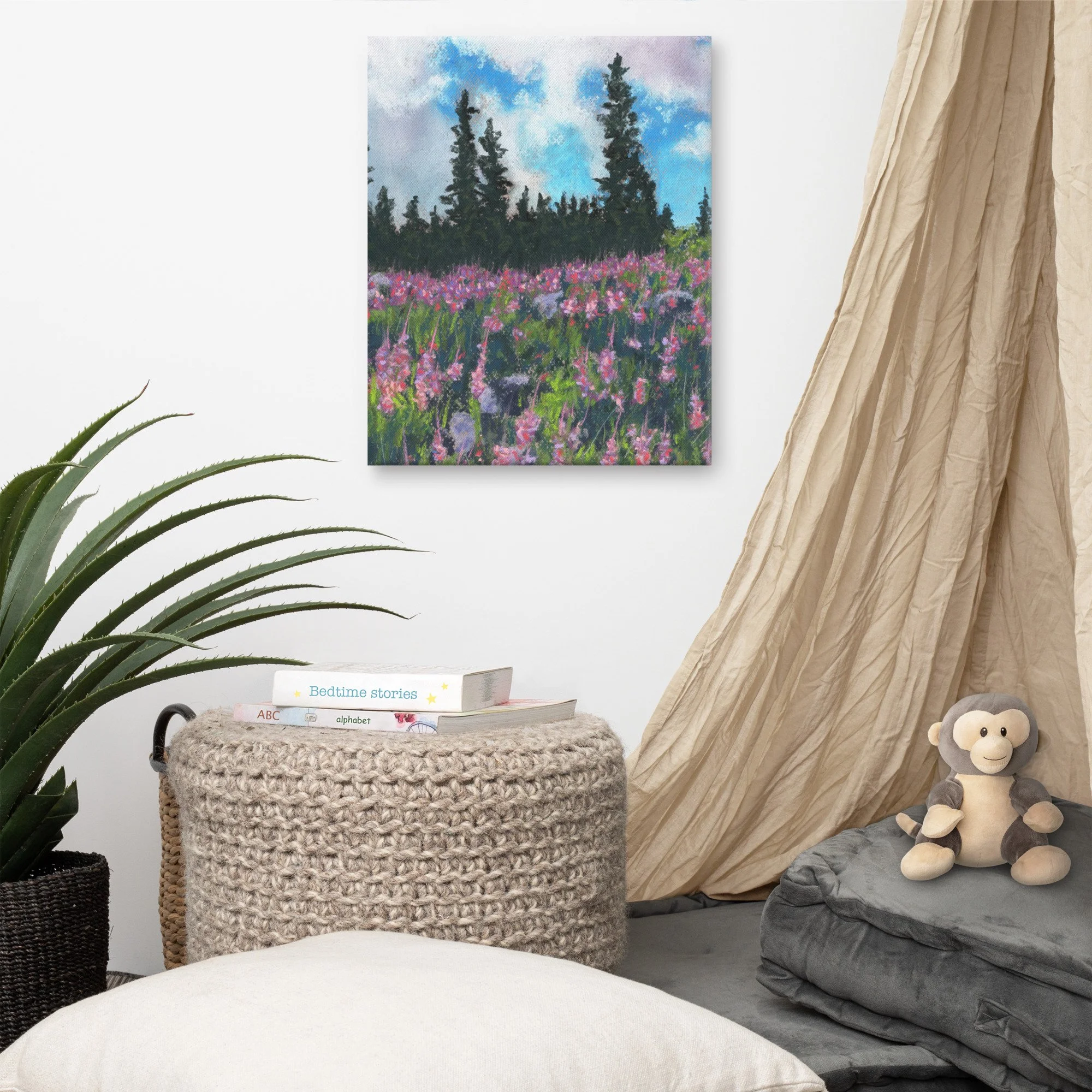 Looking to add a little flair to your room or office? Look no further - this canvas print has a vivid, fade-resistant print that you're bound to fall in love with. Featuring the original chalk pastel painting "Aubergine" by Duck Girl Art - fireweed purple wildflowers in the mountains near Durango, Colorado.