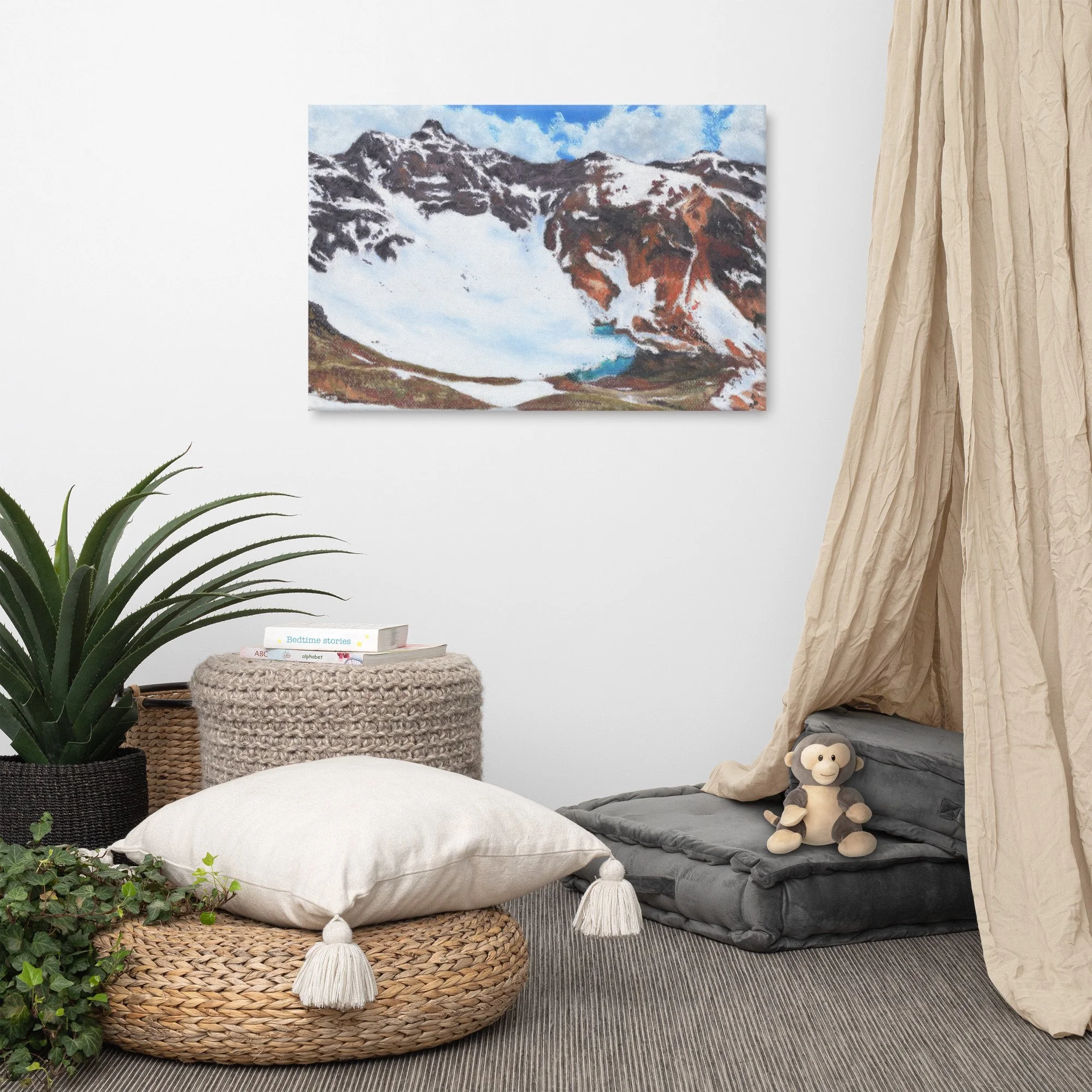 Looking to add a little flair to your room or office? Look no further - this canvas print has a vivid, fade-resistant print that you're bound to fall in love with. Featuring the original chalk pastel painting "Almost Heaven" by Duck Girl Art - Molas Lake with the Grenadier Mountains in the background; in the San Juan Mountains near Silverton, Colorado.